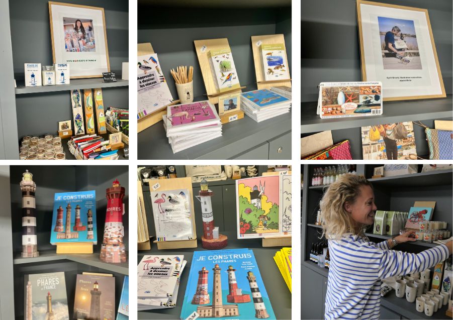 La boutique du phare propose des créations made in France, et même made in Camargue : jeux et affiches colorées célébrant notre sentinelle, vaisselle artisanale ornée du phare, bougies parfumées au sable et objets en bois ou en matériaux recyclés